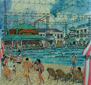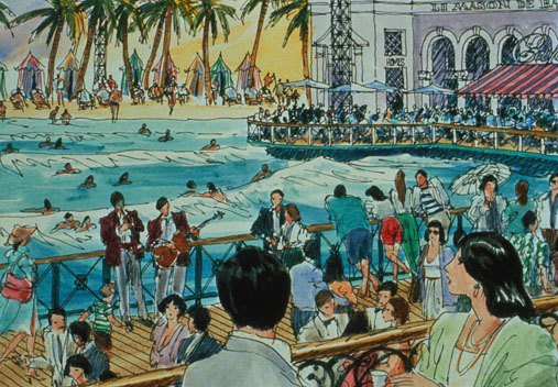 The Beautiful Era... a time of Joie de Vivre... a golden age... rediscovered as a themed private resort three hours from Tokyo on the slopes of Mount Asama. The Casino de Paris, Moulins Rouge, les Folies Bergere... the can-can and Jane Avril... La Goulue. Haute cuisine and haute couture for "Tout-Tokyo". Maxims... Tour d'Argent. All within an soaring beaux-arts grands-palais while elsewhere on the site, the lakeside "Hotel des Beaux Artes" and Club overlooking a Jack Nicklaus championship golf course. La Belle Epoque... a beautiful time!